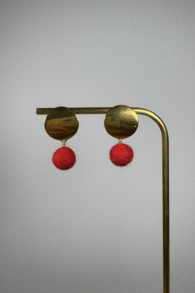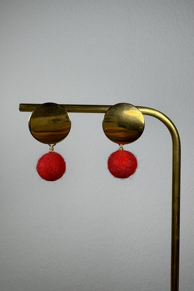 Diese handgefertigten Ohrringe verbinden leuchtendes Rot mit schimmerndem Gold. Die Kugeln aus feiner Wolle und Seide sind sorgfältig gefilzt und strahlen in warmem, sattem Ton. Die goldfarbenen Edelstahlstecker verleihen dem Design einen eleganten Glanz – ein Schmuckstück voller Klarheit, Energie und handwerklicher Präzision.
